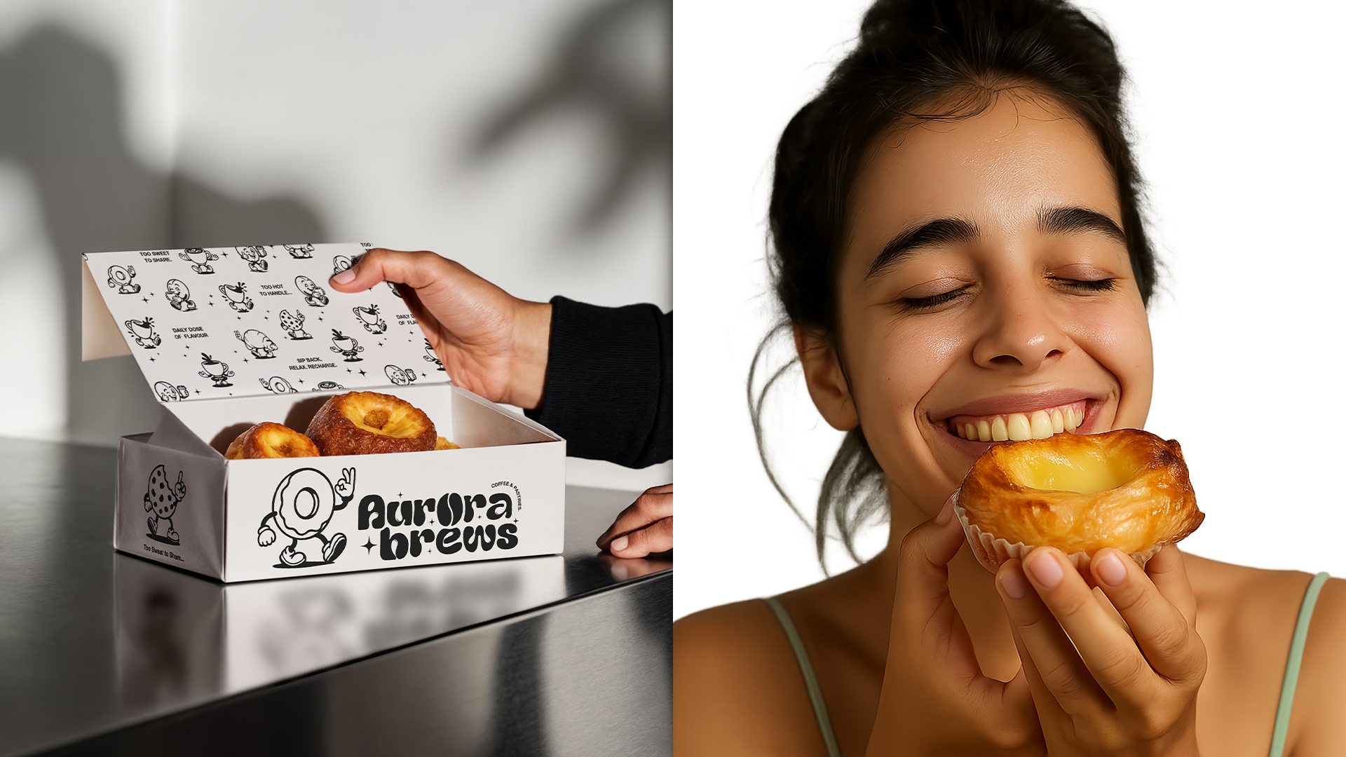 Aurora Brews is a Modern Vintage Artisan coffee and pastry brand that brings together the boldness of fresh-brewed flavour with the warmth of handcrafted quality. Designed to be more than just a café, Aurora Brews invites customers into a space where playful confidence meets mindful calm. From rich espresso aromas to sweet pastry indulgence, the brand embodies a lifestyle of joyful pause, where people can sip back, relax, and recharge in a welcoming atmosphere that feels both nostalgic and new.