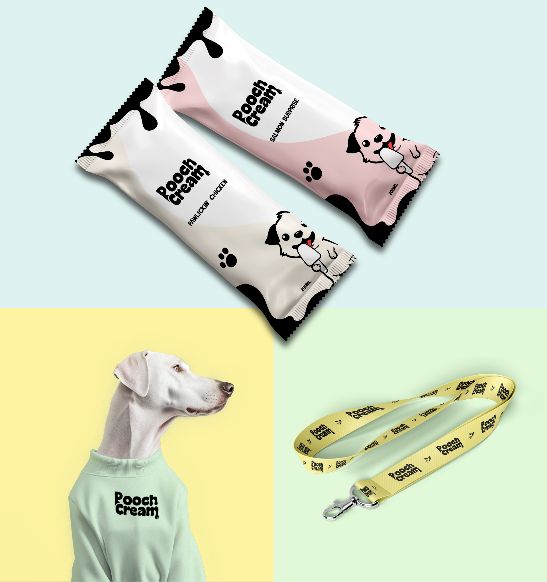 Branxl Design collaborated with Pooch Cream to develop a cohesive visual identity that brings joy to both pets and their owners. With a focus on canine delight, wellness, and indulgence, we aimed to translate the unique essence of Pooch Cream into a playful yet refined brand presence. We approached the project with empathy for dog lovers and a strong creative vision, ensuring that every visual touchpoint conveyed fun, health, and quality.